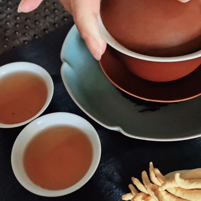 On the palate, the tea is powerful yet remains round and approachable. Its beautiful structure revolves around woody notes, with a subtle sweet hint in the background. After a few infusions, the tea moves between indulgence and elegance, revealing white floral tones reminiscent of ginger flower with a slightly peppery touch. The finish is fresh, yet clearly shows that the tea still needs time to fully integrate its roast. This is a tea to be enjoyed on its own or paired with light snacks such as almonds or cashews.